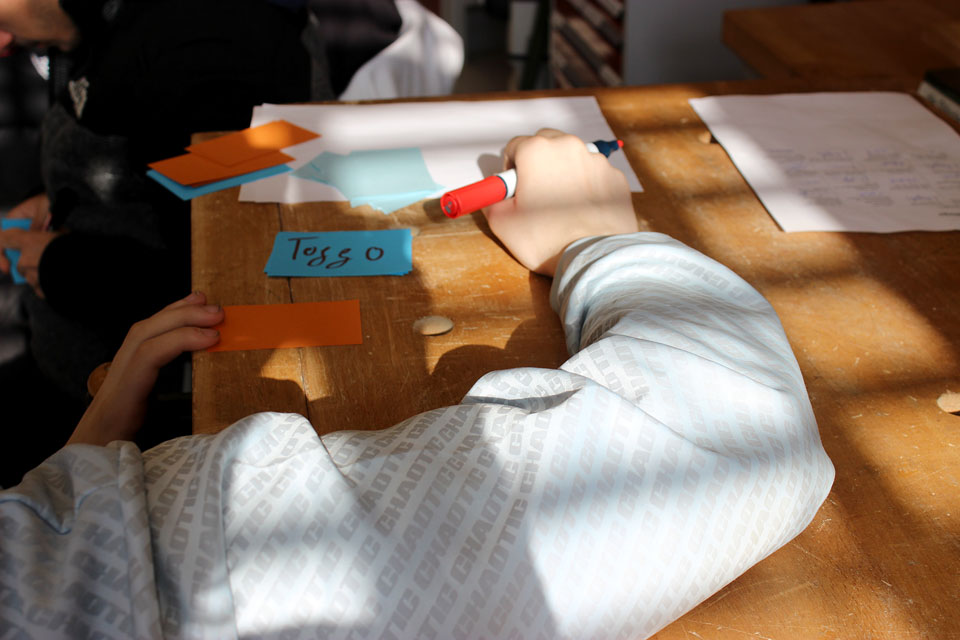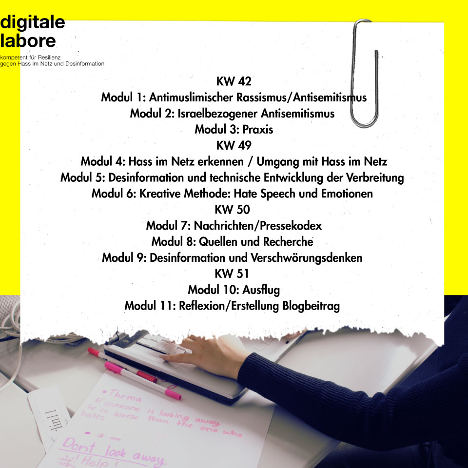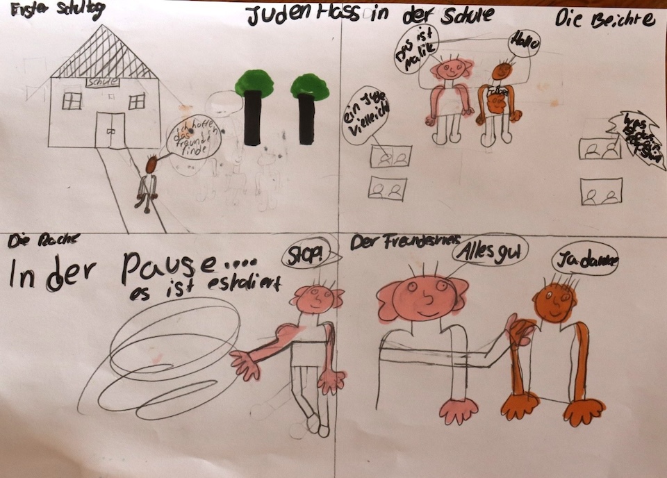 Am Anfang des Ausflugs waren wir in einem Gruppenraum und haben das Thema Judentum besprochen. Wir haben dann im Gruppenraum eine Erklärung und die Bedeutung zum Wort »antisemitisch« bekommen. Danach haben wir Videos angeschaut und konnten anonym unsere Antworten durch eine Taste, die neben uns war, abgeben. Ein Video beschäftigte sich mit der Beleidigung »du Jude!« und wie wir diese Beleidigung einschätzen. Antisemitisch oder nicht?